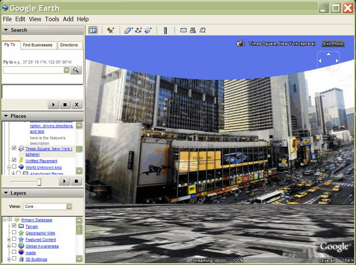 องค์ประกอบ <PhotoOverlay> ใหม่ช่วยให้คุณระบุตําแหน่งทางภูมิศาสตร์ของภาพถ่ายบน Earth ได้ และระบุตําแหน่งและการวางแนวของกล้องที่ดูการวางซ้อนภาพนี้ การวางซ้อนภาพอาจเป็นสี่เหลี่ยมผืนผ้าง่ายๆ แบบ 2 มิติ ทรงกระบอกบางส่วนหรือทั้งหมด หรือทรงกลม (สําหรับพาโนรามาแบบ 360 องศา) การวางซ้อนจะอยู่ในตําแหน่งที่ระบุและหันไปยังกล้อง