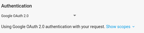 Stellen Sie im APIs Explorer sicher, dass im Menü Google OAuth 2.0 Authentication (Authentifizierung) aus: