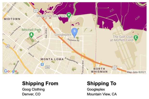 Blenden Sie nach der Adresseingabe eine visuelle Bestätigung des Liefer- bzw. Abholortes mit einer einfachen, statischen Karte ein. So wird dem Kunden noch einmal versichert, dass die Adresse stimmt, und es kommt zu weniger Fehlern bei der Lieferung oder Abholung. Die statische Karte kann auf der Seite für die Adresseingabe zu sehen sein oder auch in der Bestätigungs-E-Mail nach Abschluss der Transaktion gesendet werden.