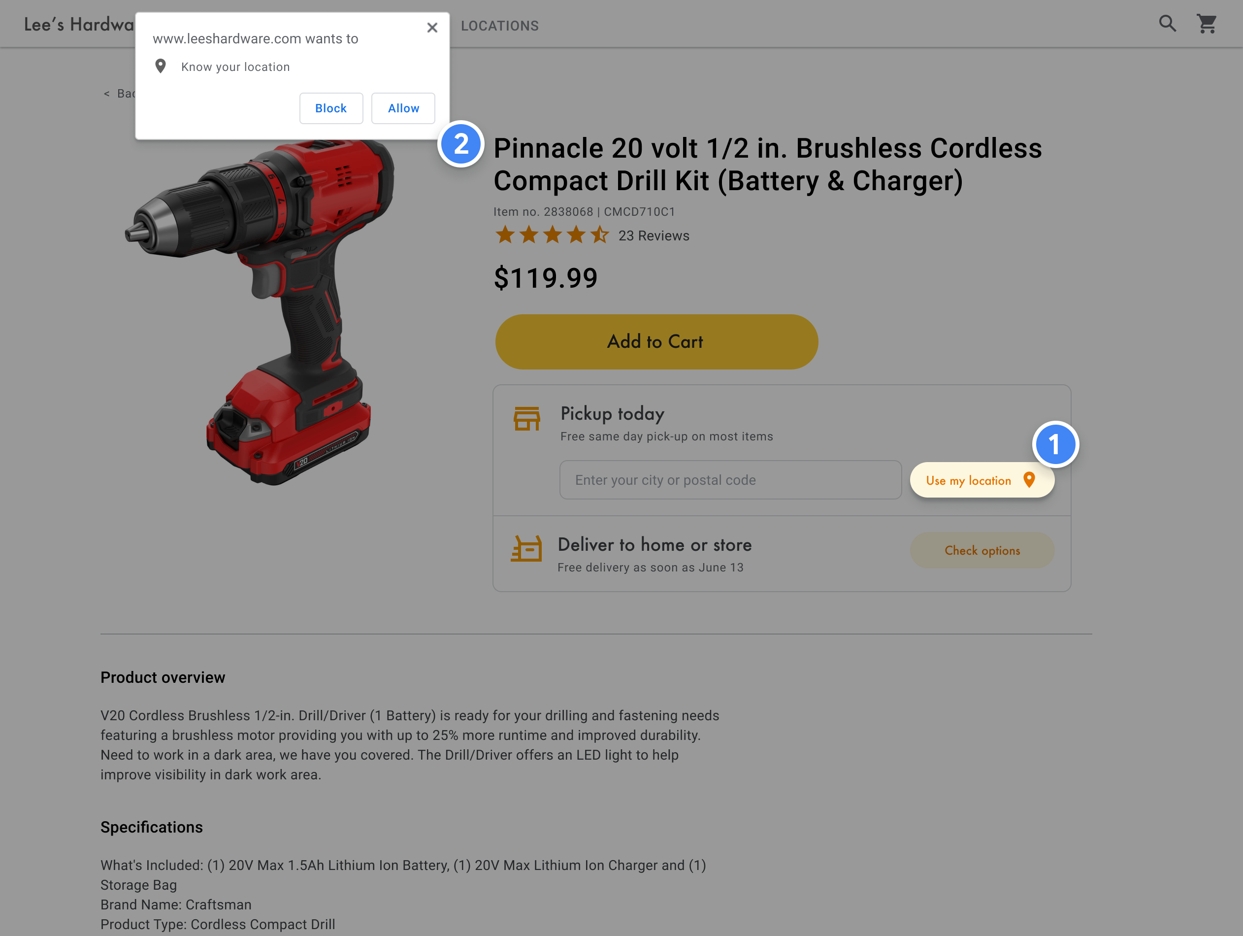 من المكوّنات الأساسية في أداة "محدّد مواقع المنتجات" تحديد الموقع الجغرافي الأولي للمستخدم. يمكنك تقديم خيارَين للمستخدم لتحديد موقع البداية: كتابة مصدر البحث أو منح أذونات لتحديد الموقع الجغرافي في متصفّح الويب أو خدمات الموقع الجغرافي على الأجهزة الجوّالة.