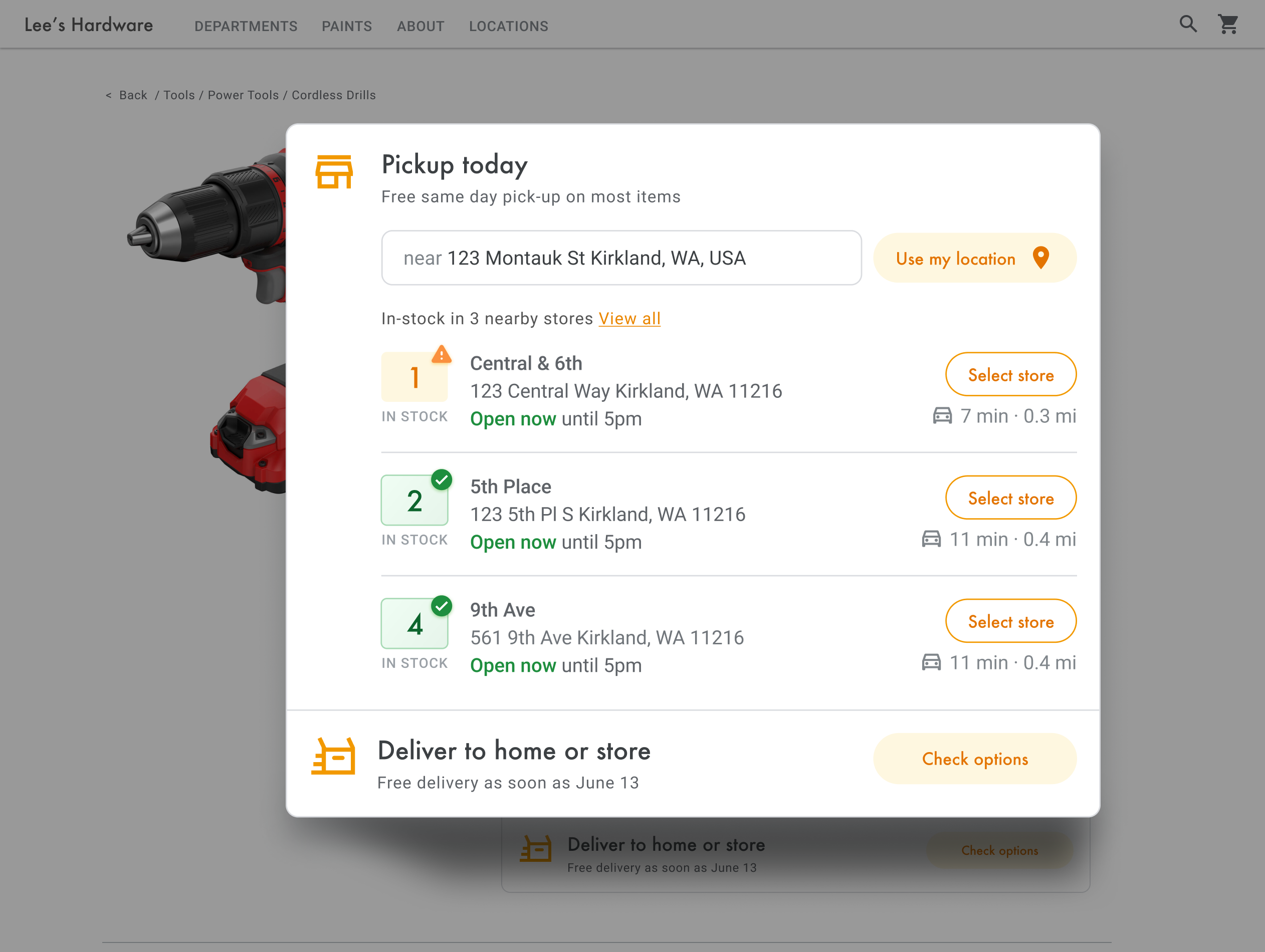 Para cada ubicación cercana puedes mostrar el estado del stock del producto según tu base de datos de inventario.