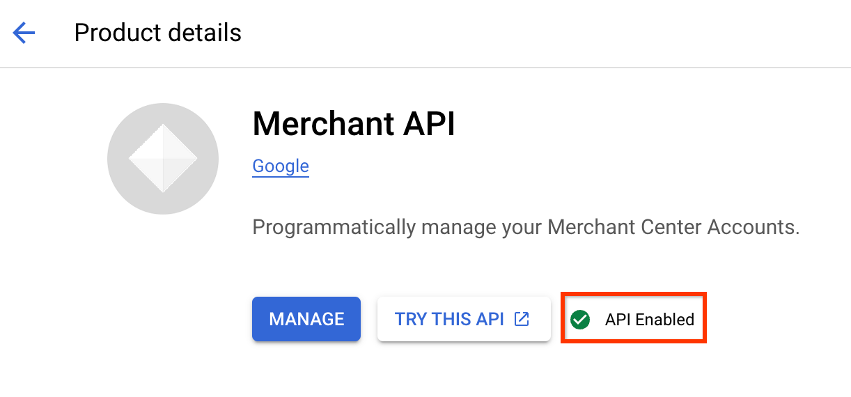 Avec Content API, il était possible de configurer l'authentification de l'API à l'aide de Merchant Center. Bien que nous ayons supprimé cette fonctionnalité, vos clés existantes restent valides. Vous pouvez continuer à les utiliser.