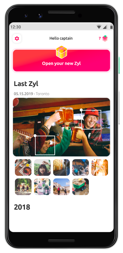 Setiap hari, Zyl memberi pengguna kesempatan untuk menemukan kembali satu kenangan khusus dan membagikannya kepada orang-orang tersayang. Dengan menggunakan analisis gambar, aplikasi ini mengidentifikasi foto, video, dan GIF yang bermakna dari koleksi penggunanya dan memunculkannya kembali satu per satu.