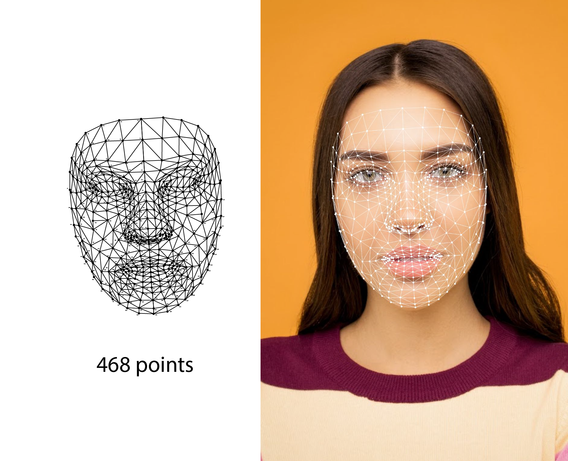 - Thông tin về lưới hình học là một nhóm gồm 468 điểm và cạnh 3D có thể dùng để vẽ lưới hình học cho khuôn mặt được phát hiện.