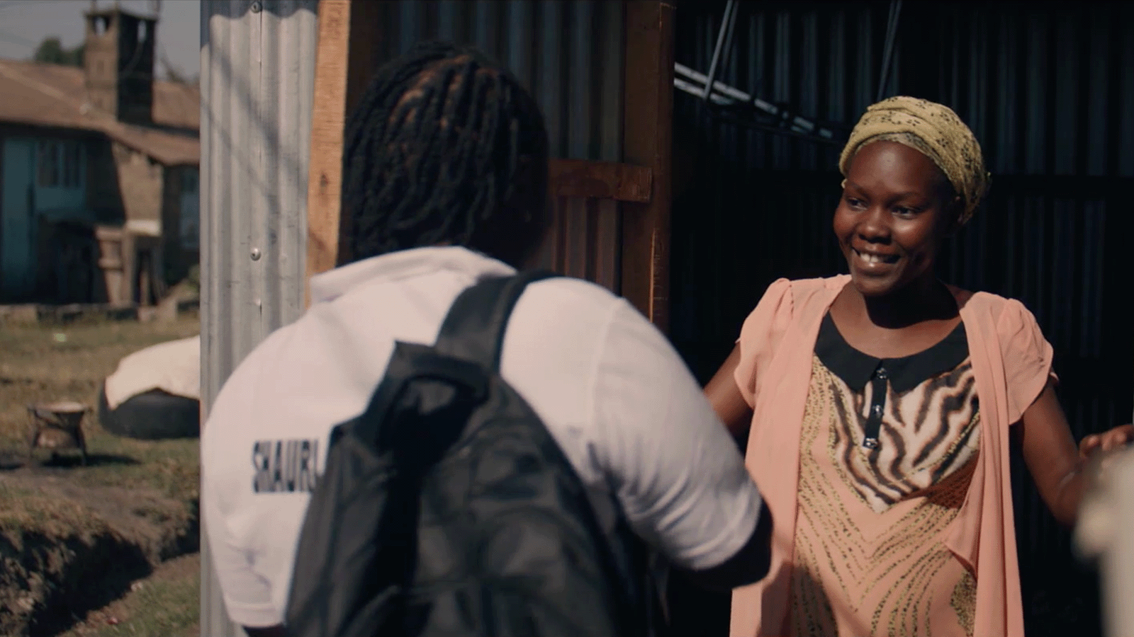 Stellah เป็นอาสาสมัครสาธารณสุขชุมชนในเขต Nakuru County ของเคนยา พูดคุยกับคุณแม่ที่มีครรภ์ในระหว่างการเดินทางไปทํากิจวัตร Stellah ใช้แอปของ Mama's Hub ในการติดตามข้อมูลผู้ป่วยในรูปแบบดิจิทัล