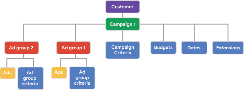 AdGroupCriterionya daCampaignCriterionekleyebilirsiniz. Ölçütler, reklamların nasıl tetikleneceğini tanımlar.- Anahtar kelimeler, yaş aralıkları ve konumlar gibi birçok ölçüt türü vardır. Kampanya düzeyinde tanımlanan ölçütler, kampanyadaki diğer tüm kaynakları etkiler. Kampanya genelinde bütçeler ve tarihler de belirtebilirsiniz.