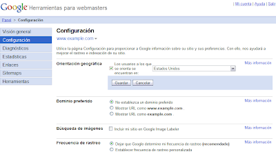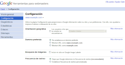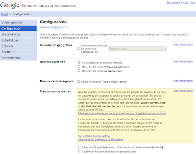 Una de las muchas características útiles de las Herramientas para webmasters de Google es la capacidad de ajustar la configuración de tu sitio web, como por ejemplo la frecuencia de rastreo o la orientación geográfica. Con el tiempo, hemos ido añadiendo ajustes y ahora han llegado a tal punto que merecen su página propia. Y así es, las Herramientas para webmasters de Google ofrecen ahora una única página donde puedes ver y ajustar la configuración de tu sitio web.