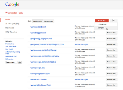 Si tienes un momento, familiarízate con la nueva navegación de Herramientas para webmasters de Google. Hemos cambiado ligeramente el nombre a algunas funciones; de este modo, por ejemplo, Sugerencias HTML pasa a ser Mejoras HTML, pero la funcionalidad sigue siendo la misma.