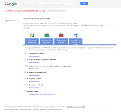 Para apoyar a los webmasters de todo el mundo, estamos encantados de anunciar, que desde hoy la Academia para Webmaster esta disponible en 20 idiomas, entre ellos en castellano.