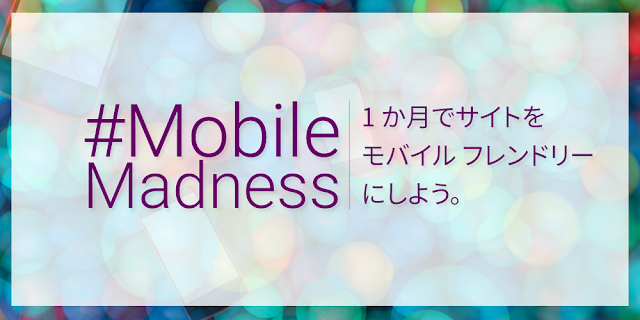 [[["わかりやすい","easyToUnderstand","thumb-up"],["問題の解決に役立った","solvedMyProblem","thumb-up"],["その他","otherUp","thumb-up"]],[["必要な情報がない","missingTheInformationINeed","thumb-down"],["複雑すぎる / 手順が多すぎる","tooComplicatedTooManySteps","thumb-down"],["最新ではない","outOfDate","thumb-down"],["翻訳に関する問題","translationIssue","thumb-down"],["サンプル / コードに問題がある","samplesCodeIssue","thumb-down"],["その他","otherDown","thumb-down"]],["最終更新日 2015-05-01 UTC。"],[],["The \"#MobileMadness\" campaign aimed to prepare webmasters for mobile search ranking changes. Activities included presentations on online strategy, measuring search performance, and choosing partners. A video series covered mobile website basics, including tools, user focus, and redirects. A Q\\&A session addressed common questions, and polls revealed user frustrations with slow mobile page loads. Participants took a 30-day challenge to improve their sites and were encouraged to use mobile-friendly testing tools. Tips were shared to help the users.\n"]]