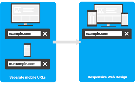 Como resultado de la creciente conversión de muchos sitios al diseño web adaptable, a muchos webmasters les surgen dudas sobre cómo pasar de las URLs para móviles independientes al uso de un diseño web adaptable. A continuación te presentamos algunas recomendaciones para pasar de URLs independientes para móviles a una URL adaptable, de modo que tus sitios tengan más posibilidades de ofrecer un buen rendimiento en los resultados de búsqueda de Google.