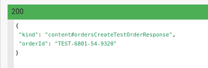 The Orders API creates a new test order and responds with an HTTP 200. The response includes the order ID of the newly created order, as the following example shows: