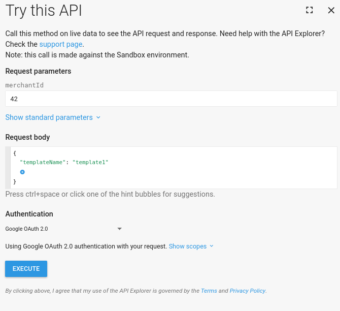 To quickly create test orders in sandbox mode, use the "Try this API" box on