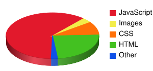 <script> var RESOURCE_TYPE_INFO = [ {label: 'JavaScript', field: 'javascriptResponseBytes', color: 'e2192c'}, {label: 'Images', field: 'imageResponseBytes', color: 'f3ed4a'}, {label: 'CSS', field: 'cssResponseBytes', color: 'ff7008'}, {label: 'HTML', field: 'htmlResponseBytes', color: '43c121'}, {label: 'Flash', field: 'flashResponseBytes', color: 'f8ce44'}, {label: 'Text', field: 'textResponseBytes', color: 'ad6bc5'}, {label: 'Other', field: 'otherResponseBytes', color: '1051e8'}, ]; callbacks.displayResourceSizeBreakdown = function(result) { var stats = result.pageStats; var labels = []; var data = []; var colors = []; var totalBytes = 0; var largestSingleCategory = 0; for (var i = 0, len = RESOURCE_TYPE_INFO.length; i < len; ++i) { var label = RESOURCE_TYPE_INFO[i].label; var field = RESOURCE_TYPE_INFO[i].field; var color = RESOURCE_TYPE_INFO[i].color; if (field in stats) { var val = Number(stats[field]); totalBytes += val; if (val > largestSingleCategory) largestSingleCategory = val; labels.push(label); data.push(val); colors.push(color); } } // Construct the query to send to the Google Chart Tools. var query = [ 'chs=300x140', 'cht=p3', 'chts=' + ['000000', 16].join(','), 'chco=' + colors.join('|'), 'chd=t:' + data.join(','), 'chdl=' + labels.join('|'), 'chdls=000000,14', 'chp=1.6', 'chds=0,' + largestSingleCategory, ].join('&'); var i = document.createElement('img'); i.src = 'http://chart.apis.google.com/chart?' + query; document.body.insertBefore(i, null); }; </script>