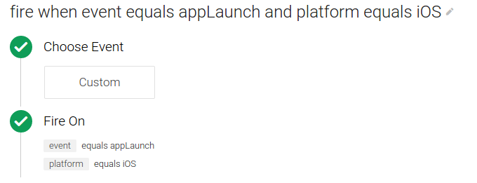 觸發條件:fire when event equals appLaunch and platform equals iOS