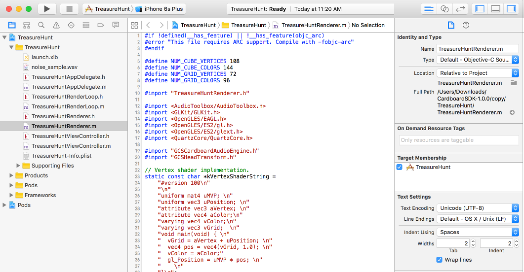 UIViewControllerto hostGVRCardboardView.Define a renderer to implement the