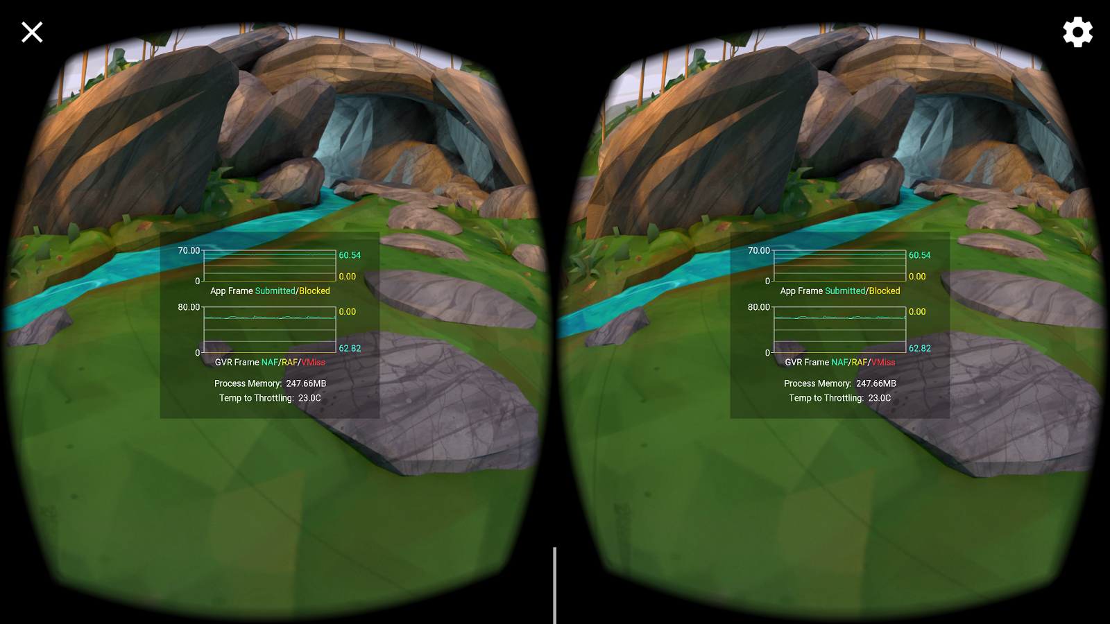 The Daydream Performance HUD is a performance overlay enabled for all Daydream applications built with Google VR SDK 1.60 and above. It provides a quick insight into performance issues you might encounter when working with VR applications.