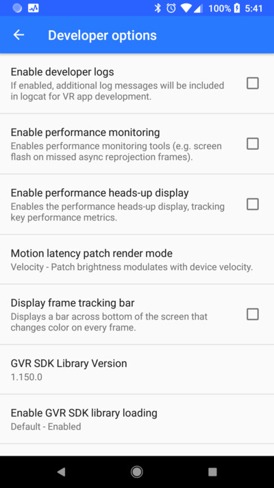 Daydream developer options