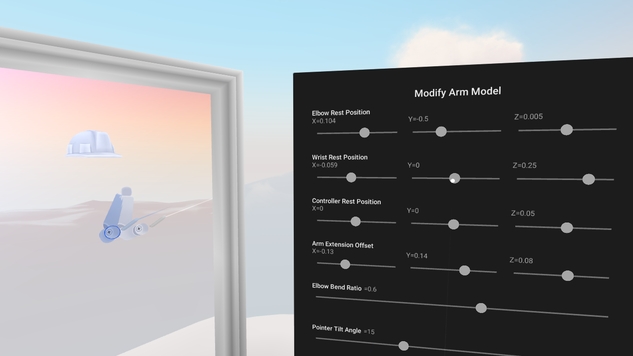An Arm Model is a mathematical model to make the 3D controller visual in VR approximate the physical location of the Daydream controller. Arm models can enable developers to achieve 6DoF style controller interactions with only a 3DoF controller. Tuning custom arm models from scratch can be a complex process. However, when it is done correctly the arm model can provide the user with fluid and natural interface for a wide range of different gestures. This element shows how it works and how it can be specifically modified to create different types of controller interactions.