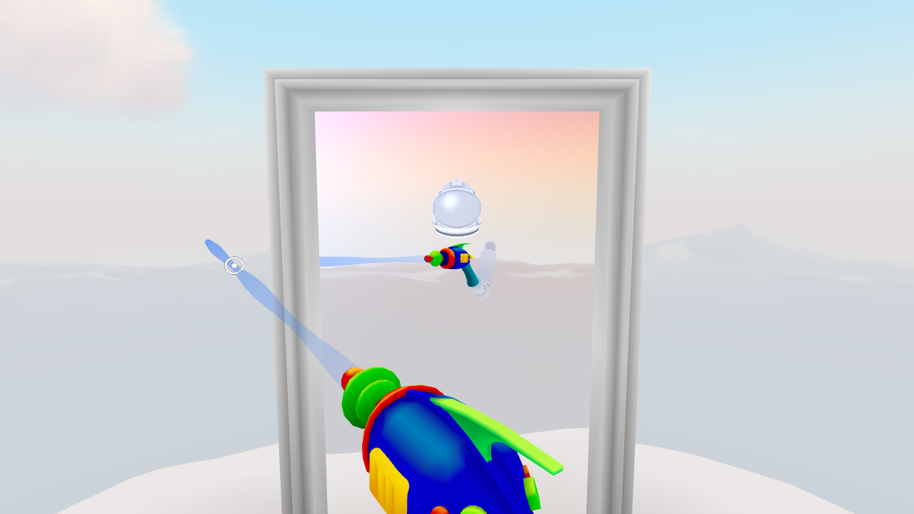 When throwing the ball by releasing the touch pad, the velocity is calculated as an exponential moving average based on the positional changes of the ball as it was held up to the point of release. Then, the direction of the throw is weighted by two factors. First, it is weighted in the forward direction of the controller. Then, the direction is weighted towards the direction that the user is looking.