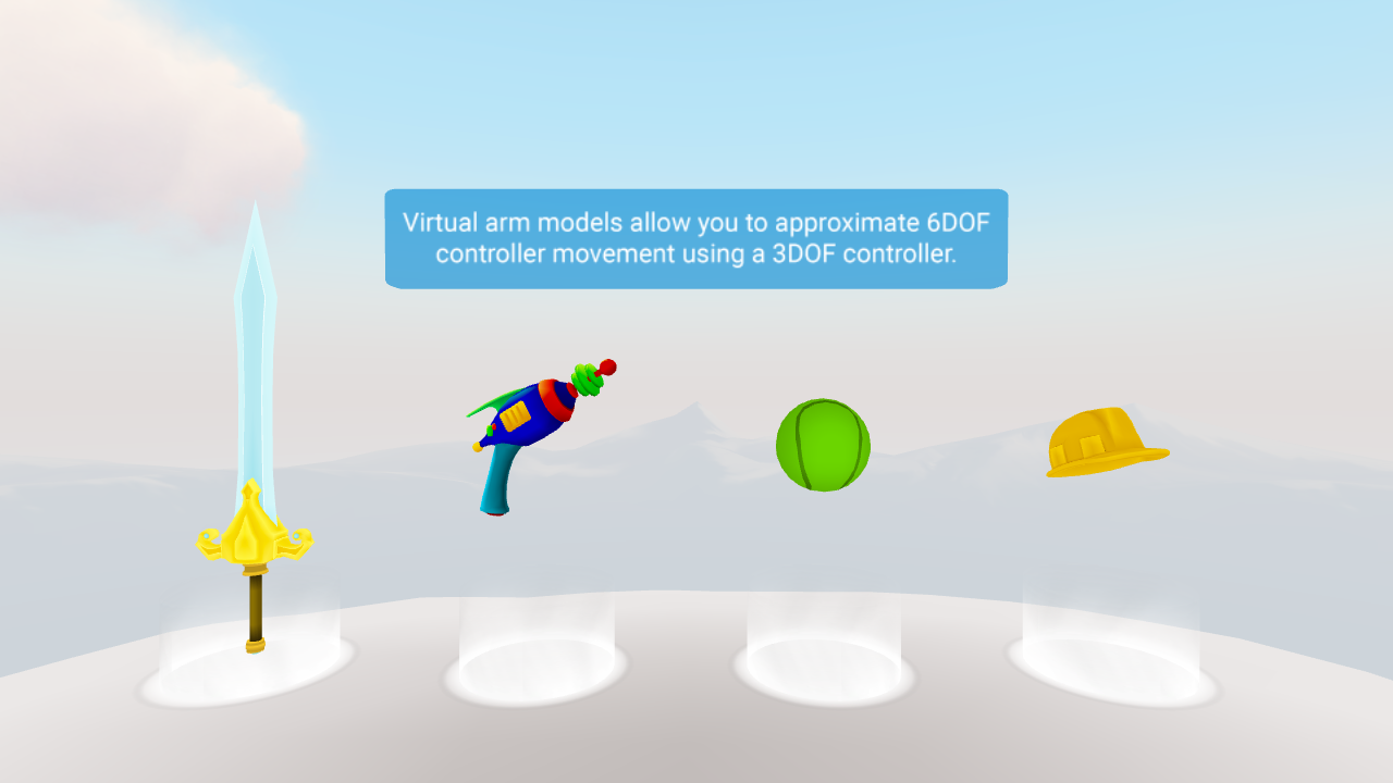 An Arm Model is a mathematical model to make the 3D controller visual in VR approximate the physical location of the Daydream controller. Arm models can enable developers to achieve 6DoF style controller interactions with only a 3DoF controller. Tuning custom arm models from scratch can be a complex process. However, when it is done correctly the arm model can provide the user with fluid and natural interface for a wide range of different gestures. This element shows how it works and how it can be specifically modified to create different types of controller interactions.