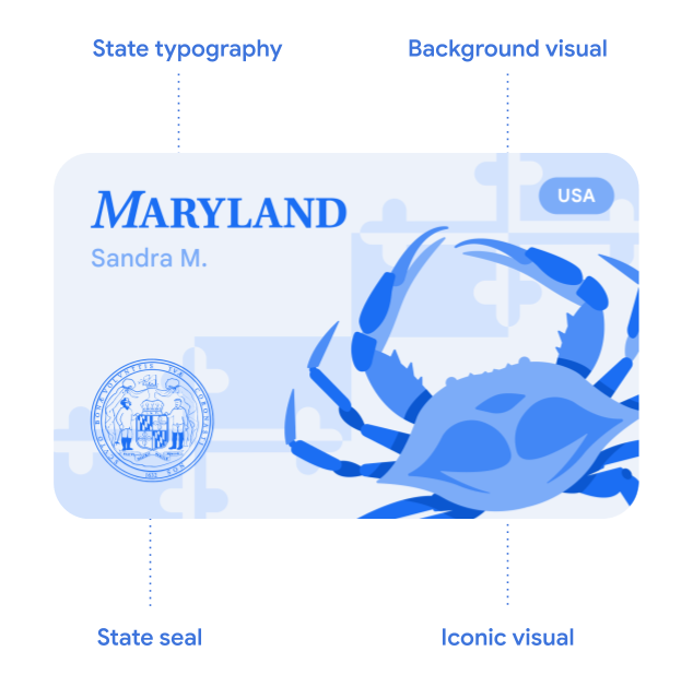 Google Wallet-এ একটি ডিজিটাল ক্রেডেনশিয়াল কার্ডে 5টি অনন্য উপাদান থাকে: