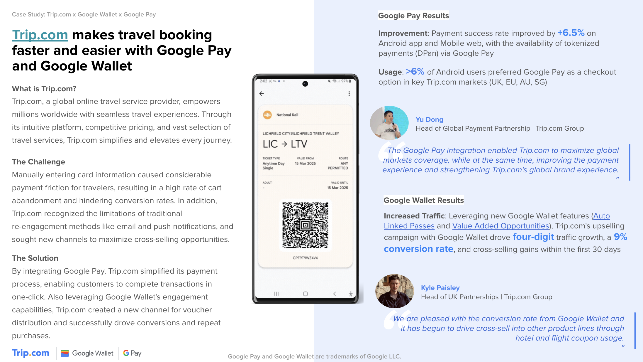 By implementing Google Wallet's latest engagement tools, such as Autolinked Passes, Trip.com successfully delivered targeted promotions to its customer base. The first pilot resulted in increased traffic and captured a 9% conversion rate from returning customers who engaged with the offer pushed through Google Wallet.