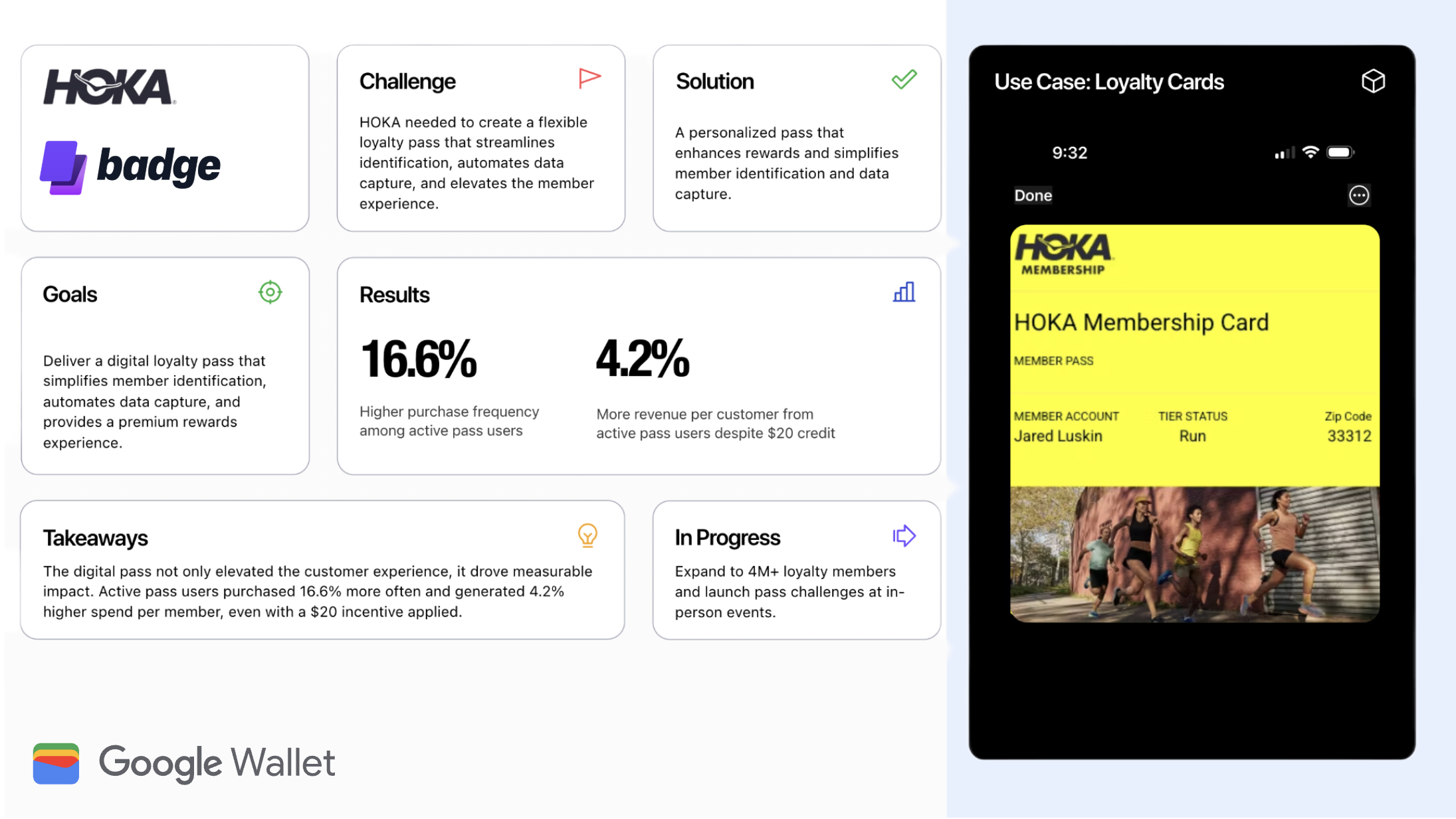 برای ارتقای برنامه وفاداری خود و سادهسازی جمعآوری دادهها، HOKA یک کارت اعتباری دیجیتال راهاندازی کرد. این راهکار تأثیر قابل اندازهگیری داشت و منجر به افزایش ۱۶.۶ درصدی دفعات خرید و ۴.۲ درصدی درآمد به ازای هر مشتری در بین کاربران فعال کارت اعتباری شد.