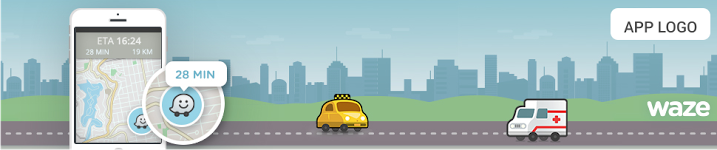 Upewnij się, że atrybucja marki jest widoczna i czytelna. Miejsce umieszczenia atrybucji powinno znajdować się w kontekście użycia i w pobliżu powiązanych z nim danych Waze. Rozmiar nie powinien być mniejszy niż w tych próbkach.