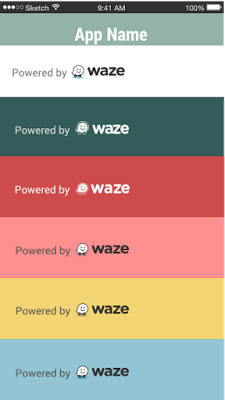 W tym przykładzie napis „Powered by Waze” („Technologia Waze”) ma różne kolory tła. Możesz użyć palety kolorów aplikacji.