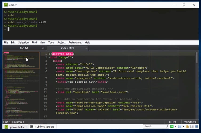 Cmder include anche alcuni altri piccoli vantaggi, come l'integrazione con le app GUI come Sublime Text.